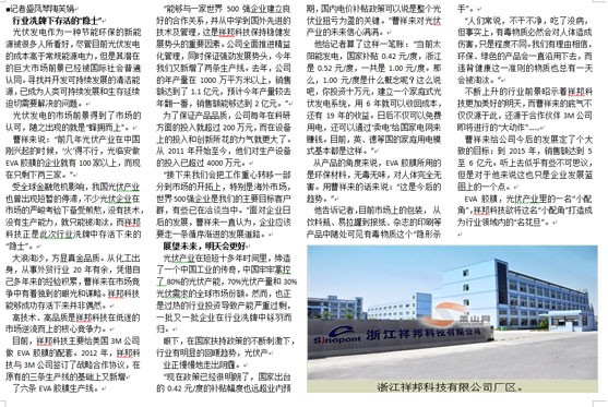 經(jīng)過(guò)長(zhǎng)時(shí)間的研發(fā)和測(cè)試,公司正式推出抗PID太陽(yáng)能光伏EVA膠膜。